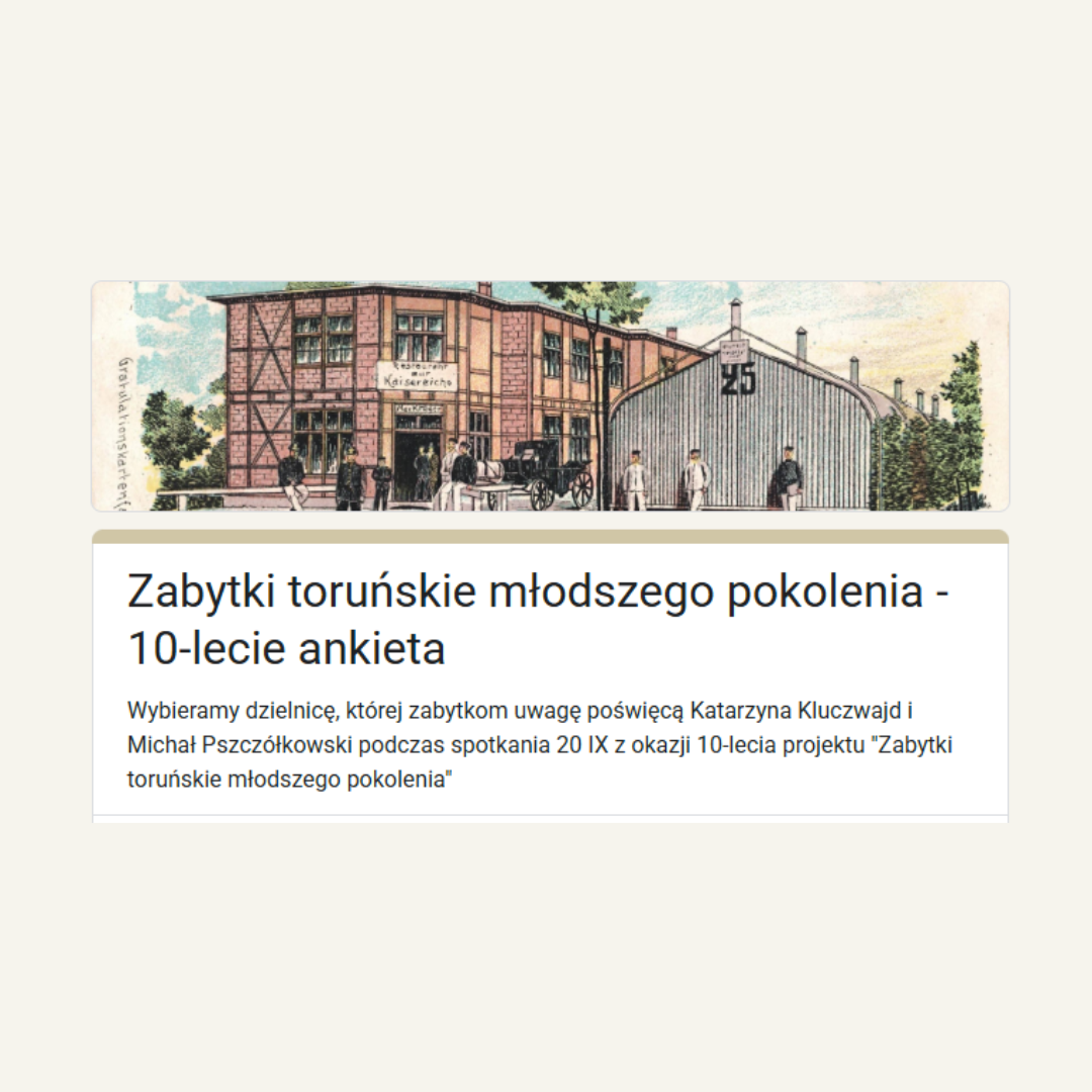 Zapraszamy na sesję podsumowującą dekadę: "10 lat 'Zabytków toruńskich młodszego pokolenia' (2015-2025) wartościowanie – poznawanie – internalizacja dziedzictwa" towarzysząca 33. EUROPEJSKIM DNIOM DZIEDZICTWA: "W stronę architektury. Młode dziedzictwo."