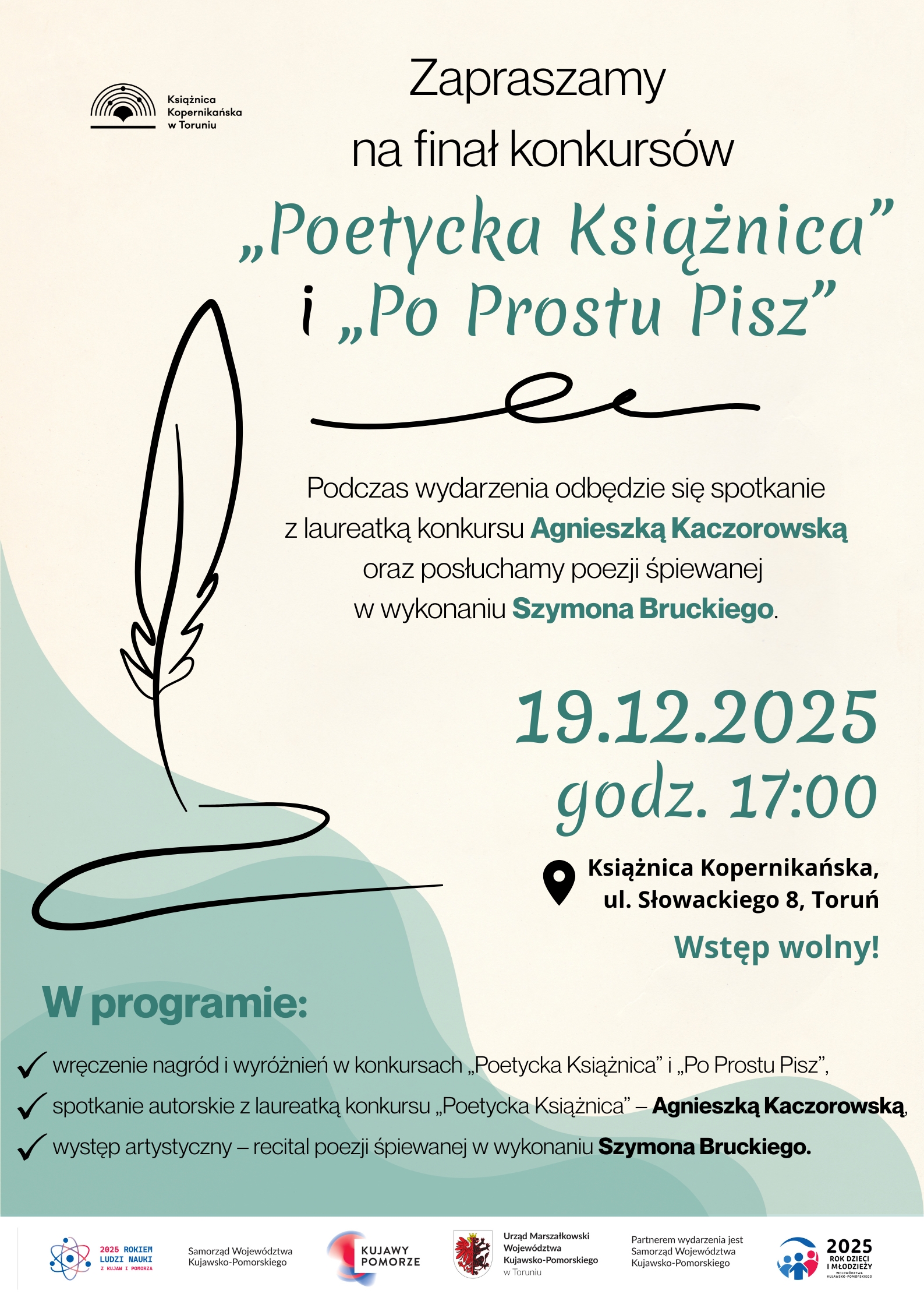 Do zobaczenia 19 grudnia w Książnicy Kopernikańskiej podczas finału konkursów "Poetycka Książnica" i "Po Prostu Pisz".